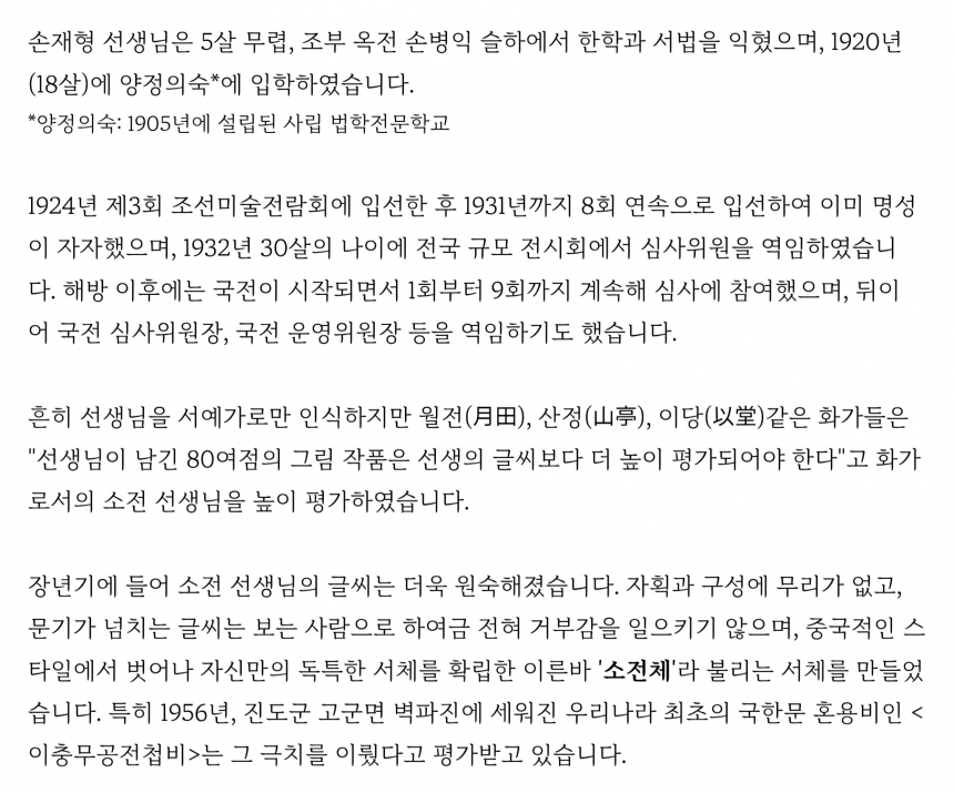 소전 손재형 행서 1점